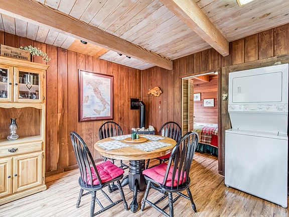 Birds view in this West Village cabin. Charming and nestled in the hill is just a great location! Walk to local restaurants and shops. Cozy dining area with its own free standing gas fireplace, perfect spot to enjoy your morning coffee. The living room says, sit a spell and warm up next to the fireplace, its gas, so no need to stack or carry firewood! Lots of windows provide a view and invite the sunshine in.Upgraded kitchen with granite counter tops, large deep sink, wood cabinets, gas oven and range. One bedroom and upgraded half bathroom on the main floor. Upstairs there are two bedrooms and a nice setting area between the bedrooms perfect for some extra guests with a futon sleeper. The upstairs bathroom is full size with granite back splash.This cabin is ready to enjoy now!