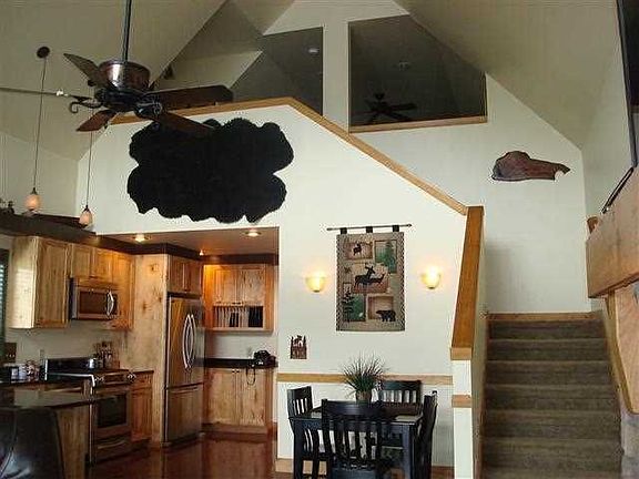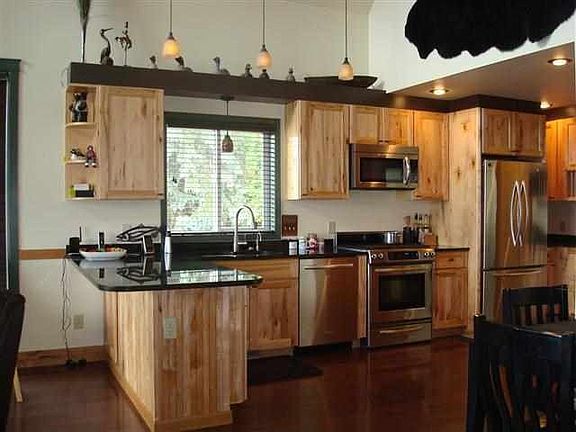 Secondary Loon Lake waterfront adjoining the beach. Walk out to 200 feet of sandy beach and available boat slip. Beautiful contemporary almost new (2011) home with granite counters, knotty maple cabinets, gas stove, hardwood floors and stainless steel appliances. oversized master suite with large walk-in closet could be another bedroom. Vaulted ceilings, spectacular views of the lake and Mountains, huge front porch and 2 car attached garage.