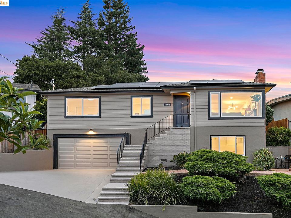 Captivating Bay Views! This remodeled 4BR/2BA in Redwood Heights features modern luxury. Bright interiors showcase refinished hardwood floors, an updated kitchen with high-end appliances, Quartzite countertops, and a Herringbone marble backsplash. The lower level offers a private bedroom with a wood-burning fireplace and a separate entrance, perfect for privacy. Enjoy morning coffee on the private patio overlooking the Bay. Indoor/outdoor living is emphasized with a living room fireplace and a spacious backyard. Additional perks include ethernet wiring, NEM2 solar, EV charger, dual-pane windows, and more. Conveniently located near amenities and commuter-friendly access to Hwy 580/13. Explore East Bay trails just moments away.