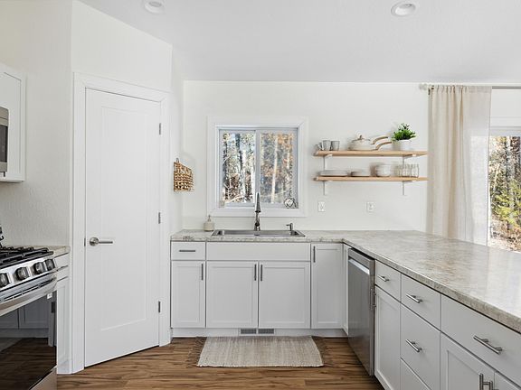 3 bed + office, 2 bath, one level living, on a beautiful wooded corner lot, open concept with vaulted ceilings, pantry, and stainless appliances! Private primary with double vanity, walk in closet, Anderson windows, and smart siding. Neutral color palette, south facing with lots of natural light, surrounded by nature in a quiet neighborhood! This property is conveniently located minutes to downtown Pequot shopping, restaurants, lakes, and medical care yet you feel like you are in the country! Contact agent for options to have garage and additional exterior amenities added.