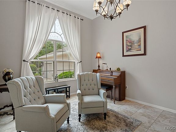 Welcome to this very elegant home in the beautiful community of Citrus Hills! This stunning four-bedroom, three-bathroom, three car garage residence boasts over 3,100 square feet of luxurious living space, perfect for families and entertaining. As you approach the property, you'll be greeted by wonderful curb appeal, showcasing a natural feel landscaped yard. The home features a double-door entry that leads you into a grand foyer with soaring 12-foot ceilings adorned with elegant crown molding. The spacious layout includes a formal dining and living room, providing ample space for gatherings. The large kitchen is a chef's delight, complete with an island and bar top seating, seamlessly flowing into a cozy breakfast nook and family room all beautifully appointed. The split floor plan offers maximum privacy, with two guest bedrooms sharing a convenient Jack and Jill bath. The fourth bedroom is particularly versatile; it can easily serve as an in-law suite, hobby room, game room, or man cave. For those who work from home or need an extra space, there is a dedicated office in the house to accommodate that space. The master suite is a true retreat, featuring a luxurious bathroom equipped with a soaking tub and a walk-in shower, bedroom with trey ceiling and sliders out to the lanai. Step outside to your personal oasis—this home boasts a beautiful pool surrounded by a paver deck, complete with a saltwater system and a gas heater, perfect for year-round enjoyment. This is the sweet spot of this home with complete privacy for those nice evening to enjoy peace and tranquility. The adjacent open DRA area provides added privacy, making this setting truly serene. Recent upgrades include the roof in Dec. 2021, pool heater 2022, water heater 2022, pool filter 2022, 1 AC 2017 and much more. Between the wonderful sunsets, quiet neighborhood, amazing amenities with the Social Membership of Citrus Hills Golf and Country Club, you really don't want to miss this stunning home. Call for your personal tour today!!