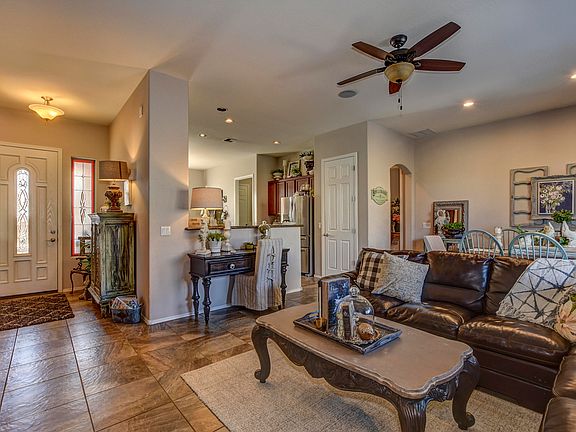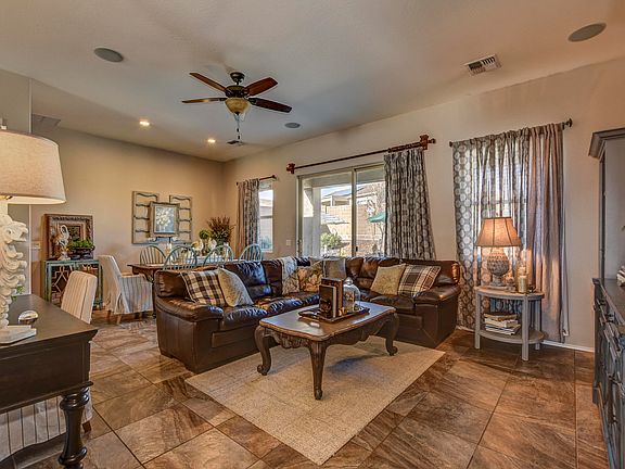 Gorgeous, well maintained split bedroom floorplan home with an open great room concept. Tile flooring flows through the main areas of this home. The kitchen features granite countertops, stainless steel appliances, eat-in kitchen area and breakfast bar seating. The master suite boasts a spacious ensuite bathroom with extra large walk-in closet, his and her sinks, walk-in shower and separate toilet room. The interior of the home is rounded out by two guest bedrooms sharing a hallway bathroom and laundry room with shelving. The lot is extremely private, features an extended patio for multiple outdoor seating areas, low maintenance landscaping and mountain views.