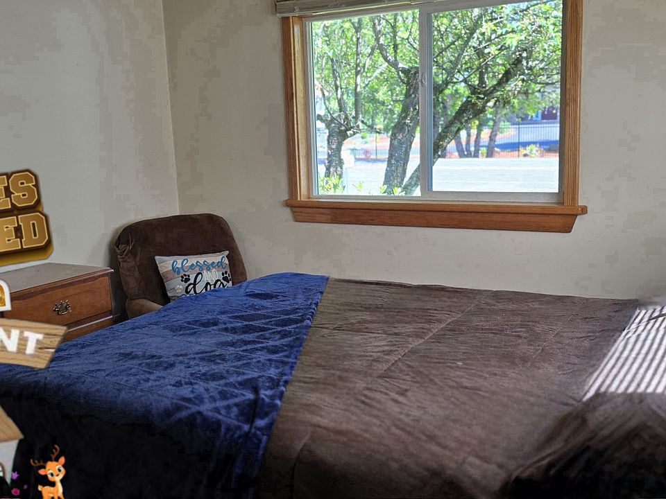 *100% of home utilities are included *fenced-in back yard and outdoor entertainment space. *A diverse array of fruit trees and a neighbor who delights in sharing his freshly harvested fruit and vegetables. He has devoted over 3 decades to refining his gardening expertise. *If Kayaking is your thing, like it's mine, then you're in luck - Santiam River is just a hop, skip, and jump away! *Country living located less than a 1/2 mile outside of city limits. *Minutes away from HWY 20 and HWY 228 *Abundance of wildlife that show up like clockwork when you have a stressful day and need a calming reminder that tomorrow will be better. *You are provided with your own full-size fridge in the kitchen *Alternate entrance/exit if you prefer to come and go more discreetly. *The furnished room available for rent includes a bed, dresser, recliner, 2 closets, and extra storage space under the bed. -Amenities and utilities provided include- Water, gas, electricity, heating/cooling, WIFI, streaming services, garbage/recycling collection, a large, discreet package/grocery delivery box, newly purchased smart washer and dryer. The premises are secured by 24/7 outdoor video surveillance, complete with two-way microphones, allowing residents to remotely view live video or motion-activated recordings through an app and secure passcode. No smoking or illegal activities. Must be okay with friendly animals.
