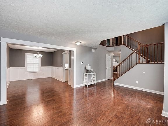 Welcome home to this traditional two-story home situated in the Summerfield neighborhood in the heart of Beavercreek. Step inside and you will find soaring ceilings in the living room and a lovely formal dining room with on-trend wainscoting. The stunning updated kitchen offers bright white soft close cabinetry, under cabinet lighting, gleaming granite countertops, a white subway tile backsplash and stainless steel appliances. The eat up bar is adjacent to the cozy family room with a gas fireplace and access to the rear deck. A powder room and a large laundry/mud room finish off the first floor. Wood look laminate flooring flows throughout most of the main level.