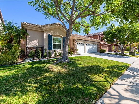 Tucked in the hills of the Eagle Glen Community, this better than a model home is a must see. This is a single story, 5 bedroom, 3 bath home, featuring a 3 car garage and detached Casita. There are 4 bedrooms and 2 bathrooms in the main home. The home features tall ceilings, ceiling fans, recessed lighting, newer paint, beautiful laminate flooring, newer carpet, upgraded base board, crown molding and shutters throughout. In the kitchen you will find that it has been tastefully remodeled with updated cabinets and granite counters. The primary suite features a double door entry, en suite with walk in shower, soaking tub and HUGE walk in closet. The guest bathroom has also been remodeled and features double sinks, granite counters, shower and bathtub. The additional bedrooms are large and feature ceiling fans and shutters on the windows. In the 3 garage you will find custom cabinets throughout, epoxy flooring and 220V electrical. Detached from the home also features a casita which has a full bathroom attached. This is perfect for the man cave, workout room or renting for additional income. In the backyard you will find a gorgeous pool and spa, newly installed turf, patio cover and built in barbecue. The home and backyard are PERFECT for entertaining. Solar is included and will be paid off by the SELLER. Close to Eagle Glen Golf course, award winning schools and shopping. This house is perfect and move in ready.