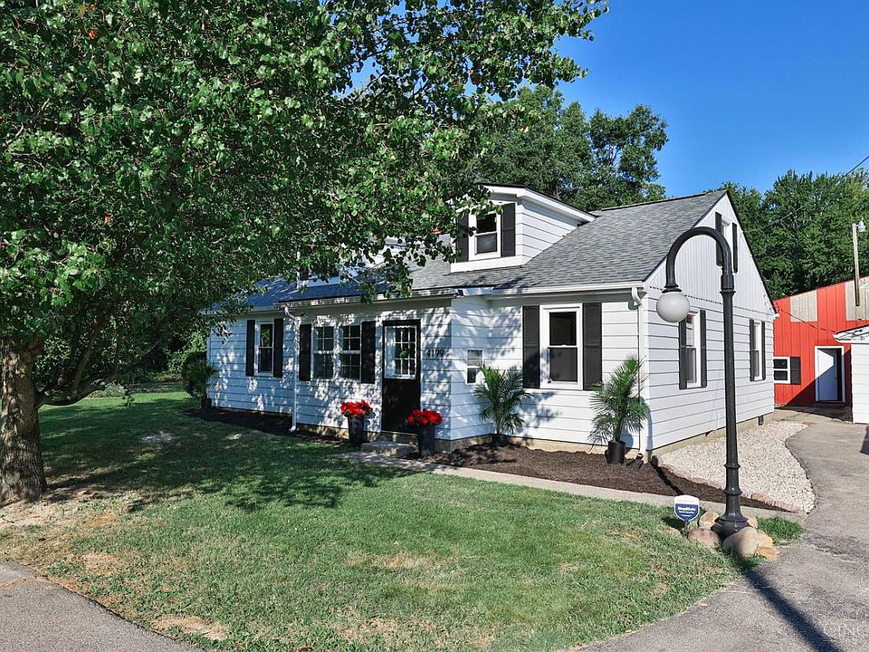 Charming Cape Cod home with 1,910 sq ft (per auditor site) on an acre! This home has so many sweet features: hardwood floors, enclosed front porch/3 season room, large living room, cozy family room with wood burning fireplace and new LVP flooring, large laundry/mud room, totally refreshed bathroom with new flooring and fixtures, freshly painted inside and out, new roof, gutters, and windows! Unfinished, insulated, walkup 2nd story with potential for additional living space and storage. Oversized garage and workshop with attached pole barn. Barn has over 1,400 sq ft and an oversized sliding door. Large enough for hobbies and toys. Previous owner had both a boat and a motorhome stored inside.