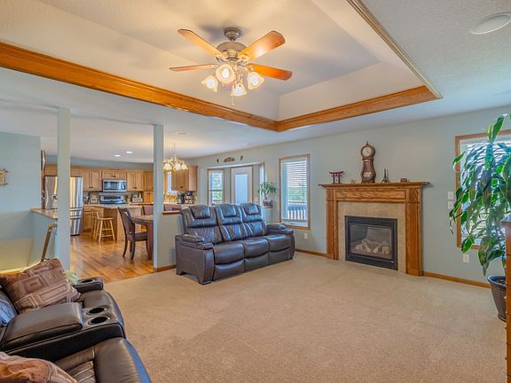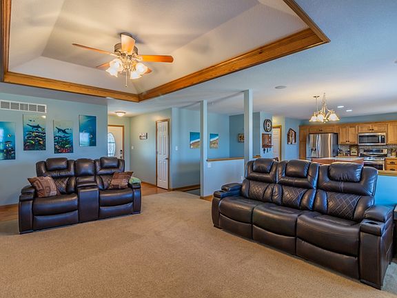 Luxury home to Include: Vaulted ceiling for a nice open feel with hardwoods in the kitchen/dining room area and entryway. Kitchen has an island with bar area to better prepare those family meals along with great storage in the pantry and appliance garage. Check out the jetted tub and shower area in the master suite. This home is move-in ready with new carpet in the living room, fresh paint in the utility room and bedrooms. Main floor laundry room. Walk-out basement and great shelved storage area. Outside you will see a covered porch, eastern shaded deck for grilling, entertaining or just relaxing after a hard day at work. Overall well balance family home.