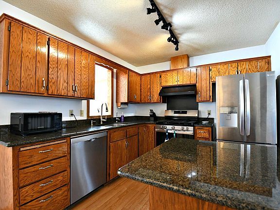 Spacious home on large fully fenced-in corner lot with mature trees. Great kitchen with granite countertops, many cabinets and a center island with breakfast bar seating. Huge upper-level family room, vaulted ceiling and access to maintenance free deck! Oversized lower-level family room & recreation room. Home has been freshly painted inside and out and includes new kitchen appliances and a recently installed whole home generator, in-ground sprinkler system, and has close and convenient access to parks, shopping, I-35W, Hwy 13 and Hwy 169 for an easy commute option.