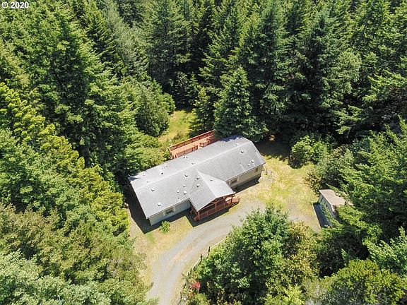 Wonderful wind protected, private dead-end road location just outside of Port Orford on 1.82 wooded acres where you can hear the ocean sounds. Spacious & well laid out 1,932 sq./ft. 3 bedroom/2 bath Silvercrest manufactured home featuring vaulted ceilings, walk-in closets in all bedrooms, custom front porch and a huge 2 level deck overlooking the trees and flora below. Circle Driveway. Popular Hubbard Creek surf spot and beautiful ocean beaches nearby. See Video & Call for appointment to view!