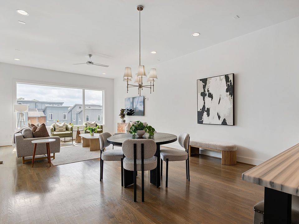 The epitome of modern luxury living in Sylvan Summit. This striking home features 3 bedrooms, 2 full and 2 half bathrooms, and a spacious bonus room that connects to a rooftop deck designed for ultimate relaxation and entertaining. Step into a grand, open-concept layout framed by 10-foot vaulted ceilings and floor-to-ceiling windows that flood the home with natural light. The three-story home includes designer finishes, modern lighting, chef's kitchen outfitted with quartz countertops, a new refrigerator, a walk-in pantry with electrical access, and stainless steel appliances. Enjoy a private, fenced backyard perfect for hosting or unwinding, and take in breathtaking city sunrises from your newly stained rooftop deck. Walk to restaurants, boutique shopping, coffeehouses, and vibrant nightlife. Experience the perfect blend of quiet residential charm and urban convenience. Renter is responsible for all utilities including water, electricity and natural gas. Minimum 6 month lease term.