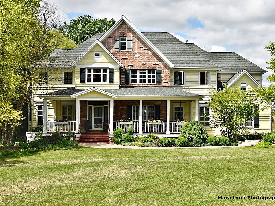 Need a vacation? Gorgeous 8 acre property with stocked private pond with a sandy beach, winding creek, large deck, storage shed, chicken coop, playhouse, gazebo, elevated garden beds, private paths & more!!! Custom brick paver walkway leads to the huge covered front porch with numerous sitting areas... 2-story foyer with hickory floors that flow throughout most of the main floor...living room has a big bay window with built-in window seat overlooking a winding creek and gazebo! There is a gorgeous new light fixture in the formal dining room with twin built-in hutches and thick crown molding! Enjoy cooking in the chef's kitchen with shaker style cabinetry, marble countertops, deep farm sink, commercial grade SS appliances, big walk-in pantry and vaulted eating space with window seat that opens to the screened porch with volume tongue & groove wood ceiling and incredible views! Dramatic 2-story family room with 100 year old barn wood beams, floor to ceiling brick fireplace and a wall of windows overlooking the stunning property! The upstairs catwalk overlooks the foyer and great room below! Master retreat with tray ceiling, his & hers walk-in closets and private spa bath with vaulted ceiling/skylight, dual vanities, big whirlpool tub and walk-in shower. All secondary bedrooms with volume ceilings. Need an In-law suite, Nanny's quarters??? Then you have to come and see the finished deep pour English basement with radiant heat floors, cozy family room with built-in projector and viewing screen, a fully appliance kitchen, bedroom with 2 closets and access to the full bath with oversized shower! You must see this beautiful countryside property to truly appreciate everything it has to offer!