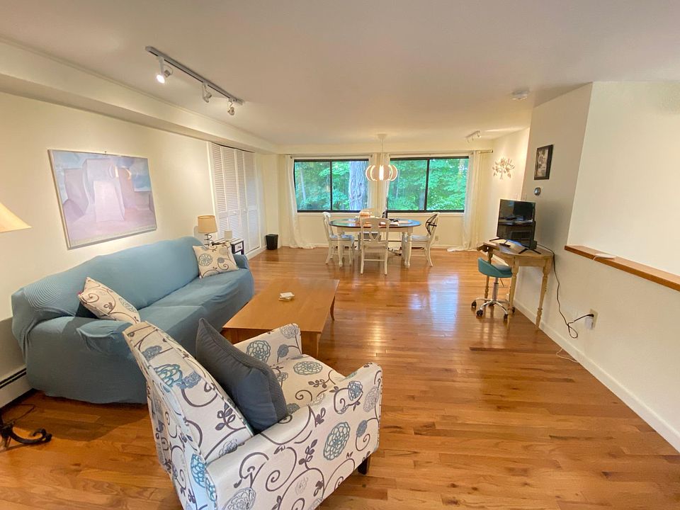 No broker fee! A separate entrance leads to this special two-bedroom unit offering an open-concept floor plan highlighted by a spacious living/dining area with beautiful wooded views and updated kitchen and bathroom. The new patio captures the lovely setting with surrounding woodlands. Further enhancing this unit are gleaming hardwood floors and in-unit washer/dryer. Heat, electric, hot water, complimentary internet available, trash disposal, water, and sewer are included in the rent. This property is convenient to the town center, restaurants, shops, universities, and commuter rail station. It can be delivered vacant or rent furnished. Come to see it soon! No smoking allowed.