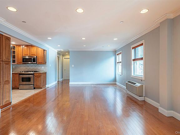 Beautiful, bright and sunny two bedroom apartment on a quiet, tree lined street. This gorgeous unit features an open floor plan, hardwood floors throughout, updated open kitchen with stainless steel appliances, updated full bath, large bedrooms with generous closet spaces and a lovely balcony! This is a corner unit. There is a designated parking space and a private storage space. Laundry facilities are on site. Close to ground transportation, major highways, the Long Island Rail Road, easy shopping and excellent restaurants. In School District #26. A must see!!!!