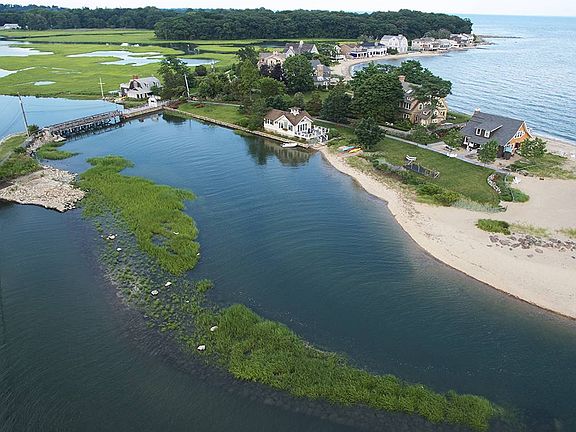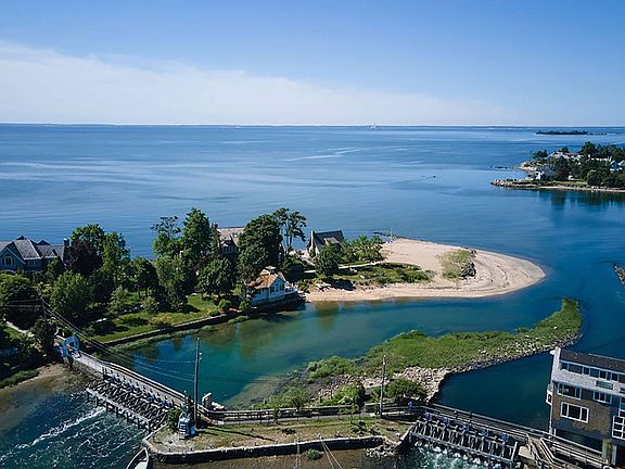 Prime Real Estate doesn't get any better than living on the point of Compo Mill Cove. This property is surrounded by panoramic water views of beautiful Long Island Sound and Mill Cove. Walk across the private footbridge and enter this idyllic compound with two homes on a private beach. Compo Mill Cove is a treasured peninsula, reminiscent of a bygone era where nature surrounds you and quiet fills the air. Take in the abundant bird and sea life and find peace on the water while kayaking, paddle boarding or sailing. 42 Compo Cove is a perfect 1-bedroom cottage built in 2008 by Michael Greenberg Assoc, perched right on the water with an expansive deck to take in the stunning views. 44 Compo Cove is an authentic seasonal 4-bedroom home built in 1917 with a classic beach house wooden interior and a cozy stone fireplace. A wrap-around porch and stone patio allow for outdoor living and plenty of room for entertaining all summer long while enjoying the 750 feet of private sandy beach frontage. Once a remote mill and farming area, today there are just 19 homes on Compo Cove. 44 Compo Cove is the oldest original house remaining, built in 1917 with both its original framing and fireplace still intact. Private location yet groceries and packages can be conveniently delivered right to your door. This property may be purchased with 48 Compo Mill Cove which is being offered as land or you can build your dream home. A one-of-a-kind chance to own a piece of Westport history! 44 Compo Mill Cove is a seasonal home that has been through 3 major renovations that include updated bathroom and kitchen, all new floor studs, new roof, updated electrical and a recently rebuilt chimney to meet code, new windows, and air conditioning units on the second floor. 42 Compo Mill Cove is a year round home, built in 2008 by Michael Greenberg Associates.