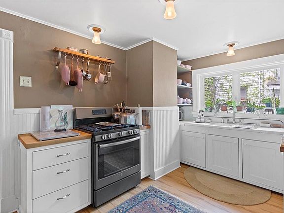 In the heart of North Bennington, this lovely home is ready to welcome its new owners. Currently configured as a duplex, the main unit includes a bright and sunny family room that looks out onto the private back yard, kitchen, powder room, formal dining room, library, living room and conservatory on the main level with three bedrooms and full bath on the second. The apartment includes eat-in kitchen and living room on the main level as well as a bedroom and full bath on the second. If a single family residence is required, it would be a simple matter to open the two sides to each other. Beautiful wood floors, French doors, amazing light, period appropriate details all make this a special property. The back yard is truly a paradise with many perennials and mature landscaping. Each unit has its own separate utilities and the rent generated by the apartment covers the current owners carrying costs. Cozy, comfortable and absolutely charming!
