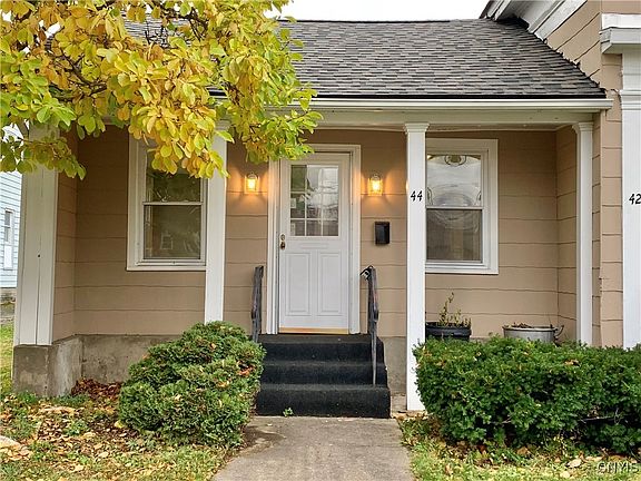 42-44 Morgans St in Ilion offers a very flexible floor plan in that 42 Morgan offers a two-bedroom apartment on the right side, which has a living room, den or dining room, and kitchen on the main floor. The second floor offers two bedrooms with a full bath. The left side, being 44 Morgan St, is a two-room office with a half bath. There is a door between the office space and the apartment, and when opened or removed, it can easily serve as a single-family home or a large office that would offer seven rooms and a full and half bath. The property has served us well as office space, but more recently has been rented as apartment space. There is a one-car garage and parking space for 4-5 vehicles. The location is ideal for office use, as it is located directly across from the municipal building/police station/courthouse. The location would make a great law office, real estate office, or any type of professional usage. The office space has electric heat with Ilion Municipal Electric, and the apartment side has a gas furnace, which was replaced in 2018, along with the electric water heater. The garage was vinyl-sided in 2024. The house roof was replaced this year with an architectural shingle, with the old roof being removed and new decking added where needed. This is a great opportunity as an investment property or as a home office scenario.