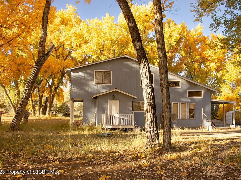 Welcome to the 'Scenic Sanctuary on the San Juan'' and ''Rural New Mexico River Retreat''. This stunning property offers the perfect setting for outdoor enthusiasts- combining all the benefits of rural New Mexico living with direct access to some of the best fishing spots in the area. Situated on the banks of the picturesque San Juan River, this home offers breathtaking views and a tranquil atmosphere. Just outside the front door you will find the perfect place to enjoy fishing from the riverbank or wading in your own personal fishing hole. Take in the peaceful sounds of the flowing water as you wait for the perfect catch. Or travel right down the road to enjoy the World-Renowned fishing area '' Quality Waters'' - offering some of the best rainbow and brown trout fishing year-round! And for all of you hunters out there.... this place will serve as a great home base after a full day of mule deer hunting at New Mexico's Premier hunting areas 2A and 2B. -As you step inside the home you will be greeted by a spacious and open floor plan, designed to maximize both comfort and functionality. The living space boasts multiple windows that showcase the scenic surroundings while creating a serene, inviting atmosphere. The wood burning stove is perfect for warming up after a long day of enjoying the outdoors.The second floor of the home features a full bathroom and 3 generous sized bedrooms with oversized closets. -Additionally, the home has a den/bonus room on the first floor that could be a multi-use space with its river views, closet space, shelving, and sliding door that opens to an outdoor patio. -Storage is ample at this home with the large pantry, multiple closets, utility area, and outbuilding (includes windows and electricity offering lots of possibilities). This property is currently being used as a very successful AIRBNB for fishing aficionados and others looking to enjoy the Four Corners region. Book your private showing today!