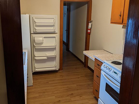 second floor two bedroom apartment maximum two-person capacity front and rear entrance one off street parking space provided in garage. recently remodeled and ready to go. owner pays water sewer trash. lease is month to month. one month security and first month's rent required. no pets unless approved. credit and background check required this is not rent to own and is not section 8 approved