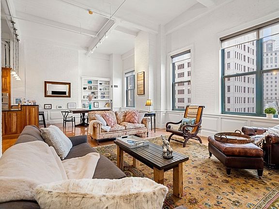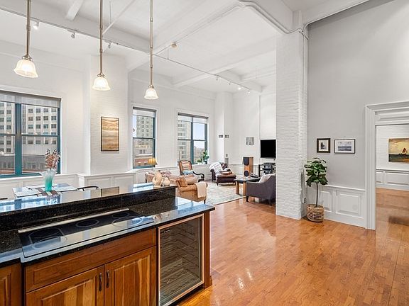 Seeking the Buyer who desires to live in the heart of downtown Boston, and begin every day with "WOW!" This special property is the perfect culmination of classic, traditional features such as custom milled wainscoting, built-ins, marble baths & a rich cherry kitchen, with modern aspects like a chandelier lit walk in closet, a full sized laundry/storage room, & an XL dance party worthy bedroom. The historic 1899 Edison Building houses this spacious live/work loft abode, with 15 foot ceilings & a wall of windows framing views of South Station/Seaport. Professionally managed, this building enjoys a brand new elevator, a/c chiller, & newly refurbished brick facade. Pet friendly HOA & high owner occupancy are cherries on top. Quick access to Theatres, Downtown Crossing, Roche Brothers, Boston Common & Beacon Hill. Or head over to Chinatown for brunch, or the Rose Kennedy Greenway Artisan Market. Rental parking is available in the Lafayette Garage just around the corner. LIVE LIT!