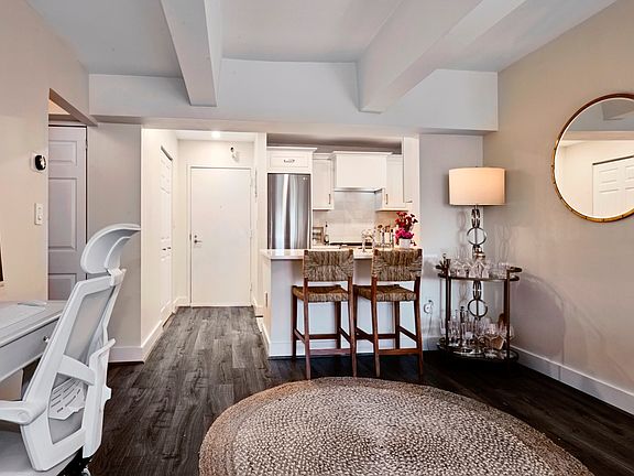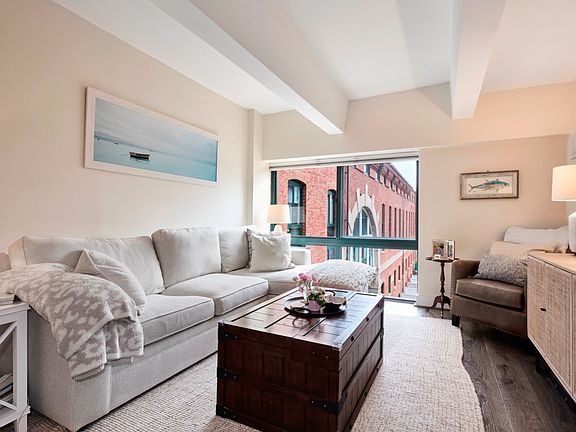 Waterfront - Charlestown Navy Yard - Parris Landing - 2 Bedrooms, 2 Full Baths, 2 Parking Spaces (valet and self-park) in this full-service elevator building.This single level condo features a brand new designer kitchen w/white cabinets, a white tiled backsplash, quartz breakfast bar, SS appliances and a fabulous pantry. This home is painted trendy white with grey flooring and floor to ceiling windows overlooking the courtyard. Primary bedroom includes an ensuite bathroom, second bedroom/office features a murphy bed and a guest bath. Ample closets, updated baths, stylish lighting, Nest thermostat and central air complete this offering! Amenities include: professional on-site management, 24-hour concierge, fitness center w/Peloton Equipment, outdoor heated pool, bbq area w/gas grills, Business Center, Club Room & elect car stations. Parris Landing is a non-smoking and pet-friendly community. Easy access to major highways, Partners Shuttle, Logan Airport.