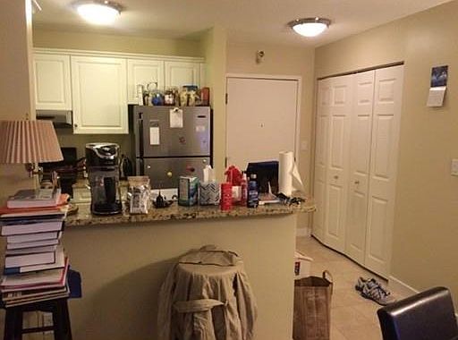 Partially renovated 1 bedroom with open floor plan features views of Boston Harbor with floor to ceiling windows! Well designed granite kitchen boasts island breakfast bar, stainless appliances, gas cooking & huge walk un pantry. Sunny and spacious living room features high ceilings and separate dining area. Oversized bedroom features customized ELFA closet system and room darkening shades. Modern bathroom. Valet parking space included. Outdoor heated pool, state of the art gym, business center and lounge included in the rent. Area restaurants and amenities in the building makes this a convenient home on the water.