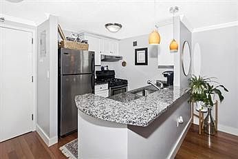1BR with one valet garage parking spot in Parris Landing s waterfront building now available. This floor-through features an open layout with a newly renovated kitchen with granite counters & breakfast bar, elegant white cabinets, & stainless steel appliances. Off the ample living room is a separate dining space, perfect for entertaining. The bedroom has a walk-in closet & it can accommodate a king-sized bed. The unit boasts sophisticated design elements including exposed brick, Brazilian cherry floors, & crown molding, along with modern amenities such as recessed lighting & central air conditioning. Building amenities include professional on-site property management, 24/7 concierge, heated in-ground pool, grill deck with gas grills, a large fitness center, business center, clubroom & overnight guest parking. Pet-friendly building convenient to the water shuttle to downtown Boston, the MGH Partners' shuttle, bus lines & major highways. Heat and hot water included in rent. Move in fee paid by tenant. 12 months.