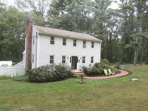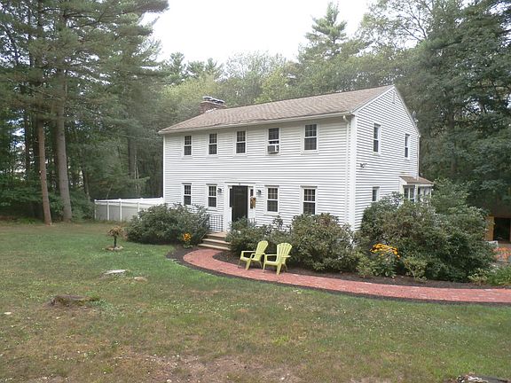 Pristine Colonial on the south side of Westford near the Carlisle/Acton Lines. Set back away from the road and on a private wooded lot makes this home the perfect sanctuary. Gleaming wide-planked birch floors throughout the first floor. Large sunny front to back living room with an abundance of natural light featuring a wood-burning fireplace and exposed beams with access to the covered deck. Stunning kitchen with breakfast nook, polished marble floor, tiled backsplash and brushed stainless steel appliances. Both dining room and family room located off of Kitchen. 1st floor laundry located in half bath. 2nd floor offers generous-sized master bedroom with wide-planked birch floors, wood burning fireplace, his and her closets and master bath. Two additional good-sized bedrooms and full bath. Enjoy the private fenced in yard with in-ground pool conveniently located next to the Bruce Freeman bike trail right at top of driveway.