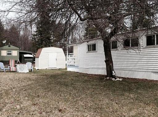 Great Chance to Simplify Your Life and still have your own place that's affordable in a Resident owned park. 14 x 60 home with a open Living Room, Dining Area and Kitchen with lots of cabinets and storage. 2 covered porches for warm summer nights, and a 9' x 20' - 3 season enclosed sun room, and separate storage shed. Monthly park rental fee = $220/mo. includes: lot rent, road maintenance, road snow plowing, water, sewer, and access to underground utilities. Tenant responsible for above ground lines for utilities to home.