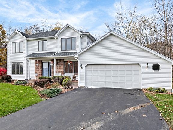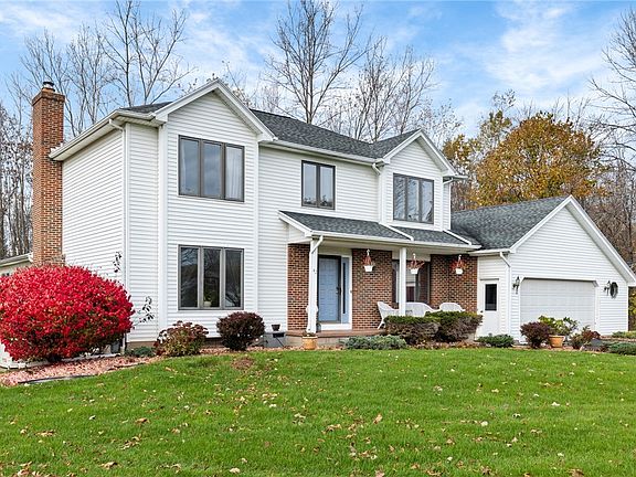 SPECTACULAR LISTING ON CUL DE SAC ON 2.94 ACRES. COMFY COVERED PORCH LEADS TO FOYER WITH BEAUTIFUL HARDWOODS. BRAND NEW FURNACE, SEPTIC INSPECTED AND CLEANED, 2 YEAR OLD GEN X GENERATOR, TWO YEAR OLD WATER HEATER. GRT RM, MUDROOM, DECK, PATIO 2004. FAMILY/GREAT ROOM WAS JUST FRESHLY PAINTED AND HAS BRAND NEW CARPET. ENTERTAINING WILL BE A BREEZE IN THIS GRAND SPACE WITH 6 LARGE WINDOW CATHEDRAL CEILINGS AND TWO FIREPLACES. KITCHEN CONSISTS OF GRANITE COUNTERTOPS, OAK CABINETRY, BREAKFAST BAR, TWO YEAR OLD STAINLESS APPLIANCE SUITE THAT OPENS TO THE NEWLY FINISHED DECK AND PATIO WITH BRICK FIREPLACE. THE LAUNDRY/MUDROOM IS SPACIOUS AND FUNCTIONAL. CONVENIENT HALF BATH COMPLETES THE FIRST FLOOR. THE GARAGE FLOOR, FRONT PORCH AND PATIO WERE EXPOXY FINISHED 1 1/2 YEARS AGO. THERE ARE FOUR BEDROOMS ON THE SECOND FLOOR WITH A FULL BATH IN THE HALL AND A LARGE MASTER SUITE EQUIPPED WITH WALKIN CALIFORNIA CLOSET AND JACUZZI TUB. THE FINISHED WALKOUT BASEMENT HAS A WONDERFUL REC ROOM WITH ALL THE TOYS AND A CONVENIENT SINK AND STOVE NEXT TO WALKOUT THAT LEADS TO PATIO. ALL APPLIANCES GO WITH HOUSE, BEAUTIFUL LOT WITH WOODS BEHIND THAT ARE YOURS! LISTING AGENT IS RELATED TO SELLER.