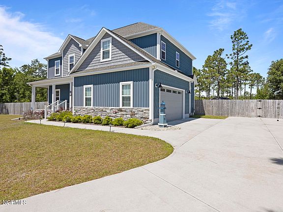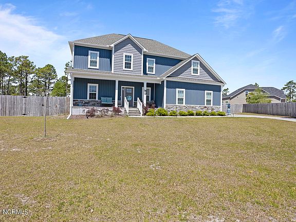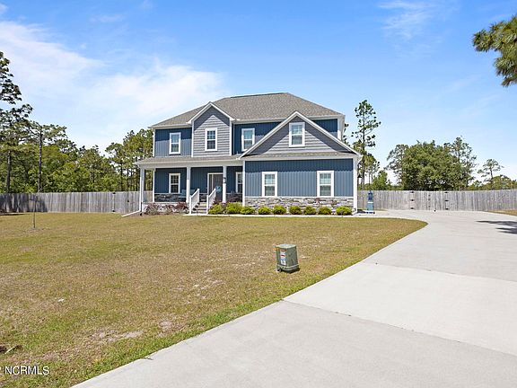 Welcome to Pinnacle Ridge! This like-new four year old home is well maintained and bursting with upgrades. It's on a cul-de-sac so no traffic. The front of the house is manicured with a long-covered porch perfect for enjoying your morning coffee. It has a wide spacious drive way that leads to a side garage. The two-car garage has custom shelving and a coated floor. Off the garage is a mud room with its own sink. As you enter the front door your greeted by the foyer. Downstairs is a large living room with a gas log fireplace and kitchen with an island, a little bar area with a wine fridge, a half bath, and the downstairs master (or whatever you'd like it to be). This home has two masters, one downstairs and one upstairs. Off the downstairs bedroom in a large bathroom and closet. Upstairs you'll find a huge master with a on suite master bathroom with a large soaking tub and a walk-in shower that anyone would love! It also a large walk in closet. Upstairs there is a loft area, two more spacious bedrooms, and the laundry room. There's also extra attic storage. Out back is a large fenced in yard. The lot is over half an acre. There's a screened in porch and a concrete patio slab. Upgrades that this home has to offer are: custom blinds, a water softener, Samsung appliance package including gas stove, pot filler, quartz counter tops, updated flooring/no carpet, gas log fireplace, new magnetic shower heads in all the bathrooms, lwhole home generator that's connected to its own propane tank, soft close drawers in the kitchen, tankless water heater, and a wooden privacy fence. It backs up to holly shelter game land which provides more privacy. Come check out what this home has to offer! **The seller has a 5 year home warranty that's already paid for that can be transferred with Choice Home Warranty**