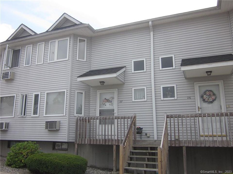 Comfortable condo living. No more mowing the lawn and plowing the snow! Going on vacation, just lock up and go! Open living/dining room, fully applianced kitchen with pantry, 1/2 bath on first floor. 2 nice sized bedrooms and full bath on 2nd floor. Full basement has laundry hookups (washer and dryer remain) and plenty of room for storage. Deck off dining room. Brand new air conditioner in living room. Convenient location close to shopping, restaurants and more. Currently some of the window crank mechanisms and some of the thermostats/baseboards are not functioning.