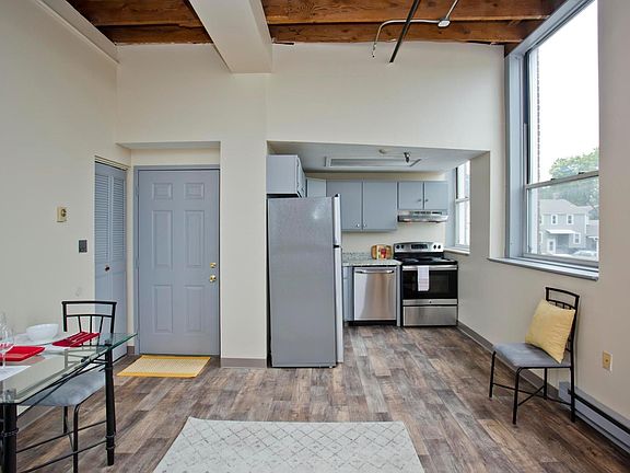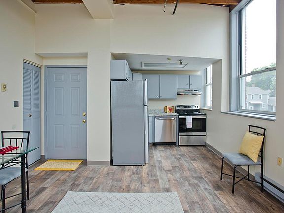 Welcome home to your beautifully 1-bedroom apartment home! The bedroom features spacious double closets and several windows which allow copious amounts of natural light. Walk out into the spacious living area and enjoy new, rustic hardwood flooring along with an AC unit for your convenience! Easy access to the gorgeous kitchen featuring stainless steel appliances, painted cabinets, and granite-look countertop. You can't miss the beautiful exposed beams and featured brick-look, which resembles a city-style apartment home. The bathroom boasts of all-white vanity and medicine chest. The building contains a laundry room, an elevator, secure entrances/exits, as well as front/back off-street parking lots for your convenience. Centrally located in beautiful downtown Westfield, the location couldn't be better!! Walking distance to restaurants, banks, grocery stores, etc. (pictures are of similar apartment) (Cats only; no utilities included). Secure 1-level/1 bedroom unit for 12-month lease. Tenant responsible for electricity/heat.