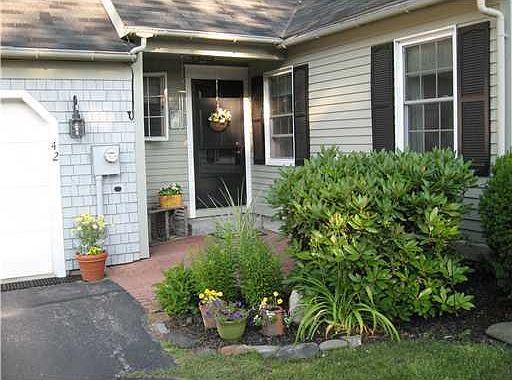 Lovely updated garden style condo.First floor living. Updated kitchen with new Stainless appliances. Sunny eat in dining area with doors to lovely patio. Livingroom with cozy brick fireplace. Attached one car garage. Very efficient to heat.