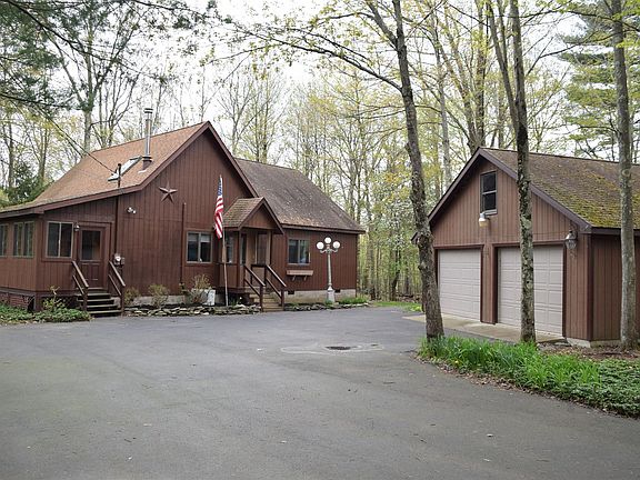Aspen Ridge Community/Walking distance to Lake Wallenpaupack. Home Features Include: 4 Bedrooms plus Huge Loft (could be 5th bedroom), Cathedral Knotty Pine Ceilings, Skylights, Soapstone Hearthstone Wood Stove, Enclosed 4 Season Room, Over-sized 2 Car Garage w/ Storage Loft, Storage Shed, Paved Driveway and more. Community Septic Mound, Community Water, Trash Removal & Road Maintenance included in yearly dues (only $940 yr). GREAT VACATION RENTAL HISTORY!