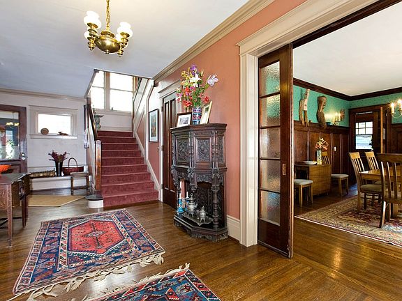 Truly remarkable turn-of-the-century home off Park Ave. Over 3,000 sqft of luscious, rich original details! Leaded glass, pocket doors, oak floors. Formal Living room w/wood burning frplc. The Kitchen has TWO walk-in pantries AND a brick wood burning frplc! 4+ bdrms 2 & 1/2 baths. PLUS a very nicely finished space on 3rd floor wtih more rooms & a bath that could be artist's studio. Lovely fenced in backyard with deck. 2 car garage.
