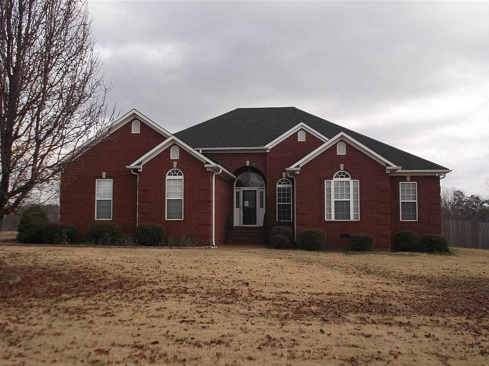 Three bedroom, 2 bath, brick home on large lot with County taxes only. Over 2,000 htd. sq. feet including a safe room which locks from the inside with dead bolts. New paint, carpet, ceramic tile, range and dishwasher. Eat in kitchen with windows looking out into the large wood fenced back yard. Den with fireplace, vaulted ceilings, built in benches with windows on each side of fireplace, dining room with hardwood floors and arched entry. Nice open plan with lots of natural light and ready to move in.