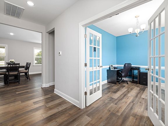 Must see home with 3 car garage features a first floor office/flex space adjacent to a half bath that creates the IDEAL work from home environment. The downstairs features a family room with an upscale fireplace surrounded by built-ins that has access to the dining and kitchen areas for effortless entertaining. The kitchen includes a spacious island, granite countertops, tile backsplash, stainless steel appliances, and a huge walk-in pantry. The owner's suite includes a trey ceiling, deluxe bath with dual vanities, separate garden tub and 5ft tile walled walk-in shower, water closet, linen closet, and a huge walk-in closet. Luxury vinyl plank flooring is throughout the entire first floor. Enjoy nature on this 0.52 acre lot in the screened-in patio. Other upgrades include all wood shelving, dual vanity in the hall bath, ceiling fans in all bedrooms, French doors for the office, whole house blinds, and a separate laundry room. Septic is permitted for 4 bedrooms. All TV mounts convey. Refrigerator/washer/dryer do NOT convey. No city taxes. Great location off Hwy 96, minutes to Hwy 64/264 and Hwy 42. See Features Sheet.