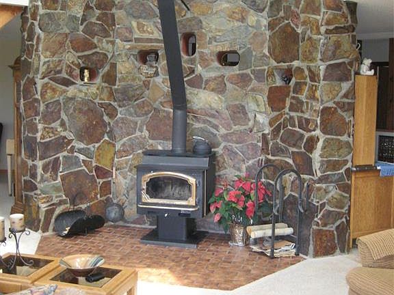 - Interior: Vaulted Ceiling, Window Coverings, Wood Stove