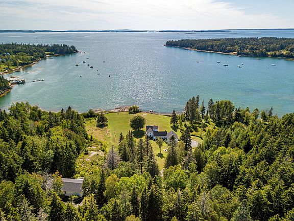 BassTerre is a classic salt water farm located on 19.5± acres with 1,140'± shorefront on idyllic Goose Cove in Tremont. This wonderful property offers seclusion and two sunny residences at the end of a private road in the desirable 'Quietside' area of Mount Desert Island.The four-bedroom main farmhouse, built around 1840, has been lovingly restored and maintained, and includes a large great room and attached barn with many vintage details. There is an additional garage and playhouse near the shore. Southwesterly views over the rolling meadows, lawns and gardens are of Goose Cove and Swan's Island beyond. A separate guest house has four bedrooms and enjoys the same captivating views but from a more elevated setting. This residence is far enough away from the original farmhouse to be privately separated or rented out if desired. Walking trails through the woods and along the shore meander to a pretty sand beach. Both residences have been used year-round and enjoy panoramic views of the cove. With nearly 20 acres, an additional residence could be built, retaining direct and private access to the road but without compromising the privacy and solitude of the original residences.