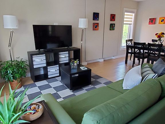 This apartment accommodates up to six and is ideal for a family or group looking for a high quality extended stay. Simply yet elegantly furnished two bedroom with two full bathrooms (master bath has a large shower, other bathroom has a tub and washer/dryer). Pull-out queen-size sofabed. Gourmet kitchen fully equipped for cooking. Furnished apartment with linens and towels supplied. Fully equipped gourmet kitchen. Tenant pays electricity and gas.