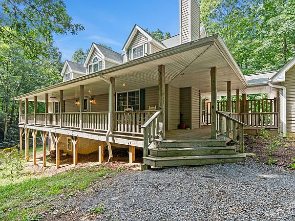 Major price Decrease! Primary on main level, 3 car garage, stream/creek, finished basement and 2.87 acre lot with privacy and so much more. Create perfect culinary dishes in the oversized gourmet kitchen complete with gas stove and island. Primary bedroom boasts a jacuzzi tub, shower and double sinks. Enjoy the sound of the creek while sitting on the wrap around covered porch or deck in this quiet and beautiful mountain community. Greenhouse is ready for gardening year round. The finished basement includes a den/game room with wood stove and oak bar, designated office, 4th bedroom, full bath and private entrance. Spectrum internet is perfect for working at home. Only 15 minutes to downtown Asheville. To watch the 3D MatterPort please use this link: https://my.matterport.com/show/?m=DymTPEUwbCZ&brand=0&mls=1&