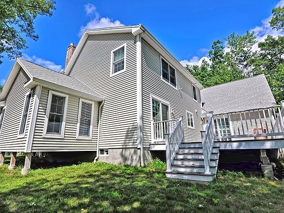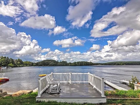 WATERFRONT LOT!!!! Stunning young contemporary cape design has over 3200 sq. ft and includes a waterfront lot directly across the street! Open and spacious kitchen and living room with beautiful hardwoods and fireplace! Stylish kitchen with granite,stainless, gas range, and 2 ovens! Front to back tiled sun room! First floor master bedroom with master bath, walk in closet and access to the deck. First floor laundry plus additional laundry hook ups in the basement! Central A/C throughout! Two large bedrooms and a full bath on the second level. Huge front to back bonus room on the second level offers a place for a family room, office or playroom...or all three...plenty of space! Large deck in the back with peaceful setting to watch nature from Pouts Pond. Lots of storage in the basement including a cedar closet. Outdoor storage shed....and So much More! Waterfront lot contains 3600 sq. ft., with a deck and electricity. Prime spot to relax after a fun day on the lake!
