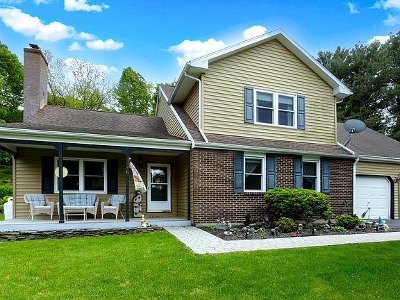 Nestled just off the beaten path in Alburtis Berks County yet conveniently accessible to Lehigh Valley and major routes, this lovingly maintained 4-bedroom, 2-bath home offers the perfect combination of privacy and convenience. Situated on a beautifully landscaped 1.5 acre lot this property is a rare find. Step inside from the covered front porch and discover an inviting foyer and a spacious living room featuring a cozy gas fireplace that is ideal for relaxing. The kitchen with dining area offers access to the rear deck complete with an awning that is perfect for seasonal entertaining. The remodeled kitchen and baths add modern comfort and style. The first floor includes a main bedroom while the second floor has 3 additional bedrooms and a full bath. Handsome flooring and tile accent the first and second floors. The partially finished lower level offers a generous family room with coal stove, a storage room with built-in cabinets and a large utility/laundry area with outside exit. The oversized garage features newer garage doors, overhead storage, a sink, generator hook-up and rear outside exit. Additional highlights include, replacement windows, gutter guards, ceiling fans throughout and more. This home is truly move-in ready and has been thoughtfully upgraded throughout. Don’t miss your chance to own this exceptional property that balances space, privacy, comfort, and charm. Video and virtual tour available online.