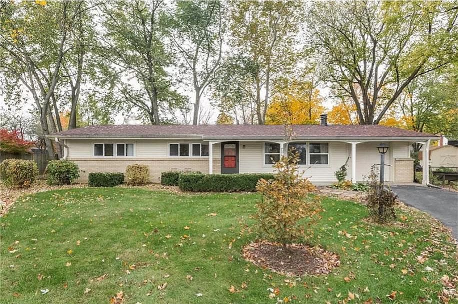 OPEN HOUSE THIS SATURDAY 1-3! Stunning Mid-Century Ranch Home In The Heart Of Downtown Carmel! Walking Distance To The High School, Library, Monon & All The Restaurants & Shops Of The Arts District. Natural Light Fills The Home With Vaulted & Cathedral Ceilings, Wood Beams, In Every Room! Cozy Family Room Wood Burning Fireplace. Kitchen Beautifully Remodeled Granite, Oversized Sink & Faucet, Painted Cabinets. Move In Ready, Fresh Paint, Newer Carpet, Roof & Water Htr New In 2014. Hvac In 2010. Newer Windows. New Light Fixtures, Updated Baths. Park Like Setting On Scenic Cul-De-Sac Homesite, Mature Trees, Fenced In Yard, Just Under 1/2 Acre. Large Mini-Barn. All Appliances Stay Incl Washer & Dryer. Hard To Find, Truly Special Home & Location!
