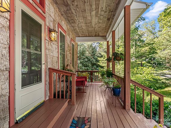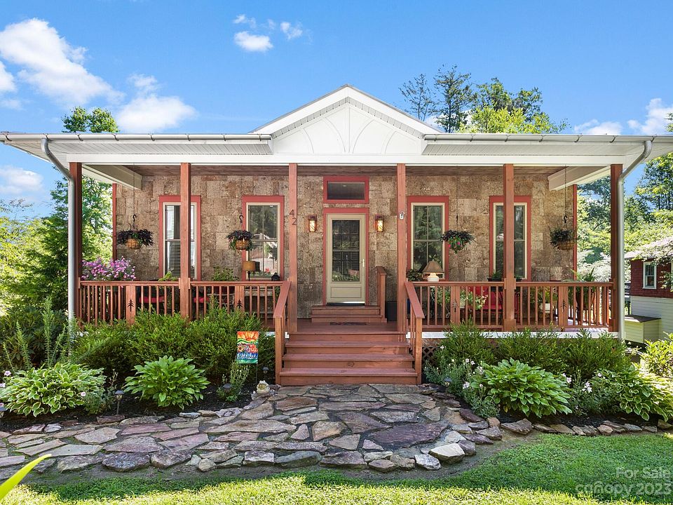 *** HIGHEST AND BEST OFFERS BY 5PM TODAY (7/1) *** This beautifully landscaped, meticulously cared for, like new home features rustic wooden accents with modern finishes throughout. Much of the wood interior finishes was harvested from a large poplar tree taken when the house was built. 42 Boxwood Lane is located on a large city lot on a quiet gravel lane overlooking Franklin Park just a short walk to the many shops, restaurants and breweries in downtown Brevard. Inside the home you will find an open floor plan, wide plank oak flooring, wooden plank walls and ceilings, custom cabinets, and a huge kitchen island. The primary bedroom has vaulted ceilings, walk in closet and a walk in tile surround shower. The home features single level living with 2 bedrooms and 2 full baths with a den and a bright 4-season sunroom. You will love all the custom features like the built in breakfast buffet, transom windows, and poplar bark siding! There is ample storage in the 1000 square feet basement.