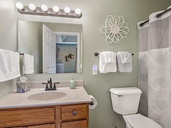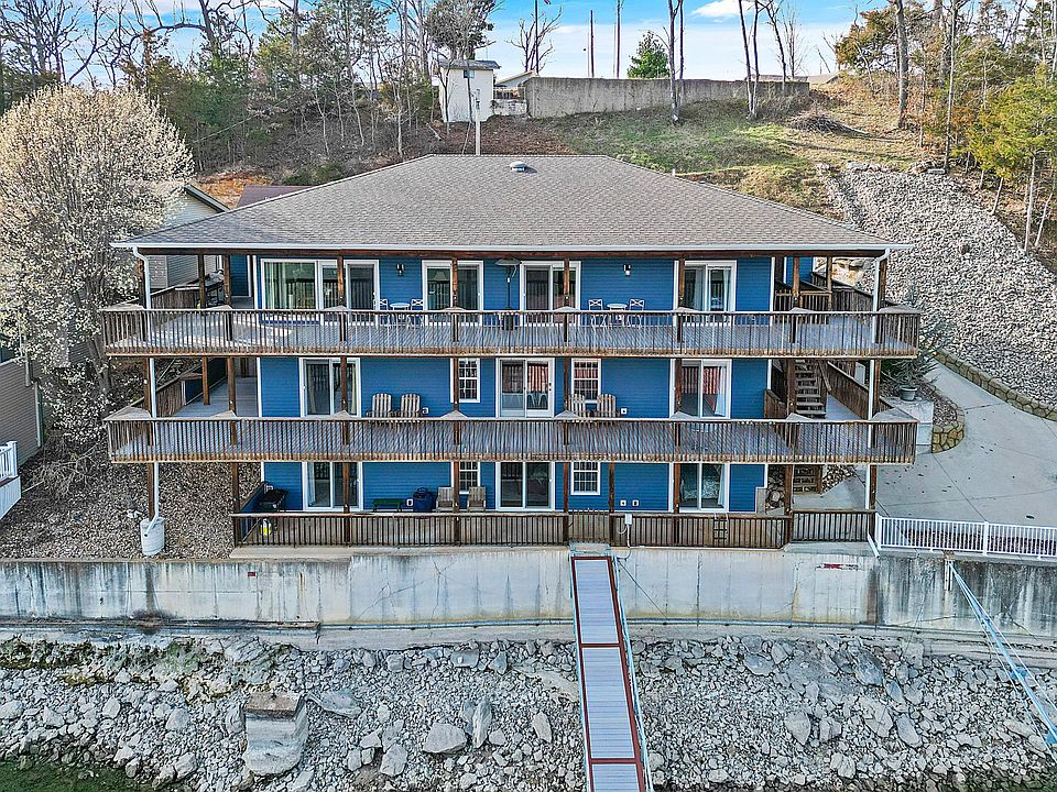 Inside the rental, you'll find 6 spacious and beautifully decorated bedrooms, each with its own unique charm and style. Wake up each morning to the tranquil sounds of the water and enjoy the picturesque views from your own private balcony. With 7 modern and well-appointed bathrooms, everyone can enjoy their own space and privacy. Whether you prefer a quick shower or a long soak in the tub, you'll find everything you need to refresh and rejuvenate. The rental also features 2 fully equipped kitchens, perfect for preparing delicious meals for your family and friends. You'll find everything you need to cook up a feast, including appliances, cookware, and utensils, and with a dining room that seats 28, you will have plenty of room to enjoy meals together. On the third level, you can hang out at the wet bar, play board games, and enjoy the dance floor with professional lighting. But perhaps the most impressive feature of this rental is the awesome dock. Spend your days lounging by the water, fishing, or boating, and create unforgettable memories with your loved ones. Book your stay today and experience the ultimate lakefront vacation in this luxurious and stunning rental.