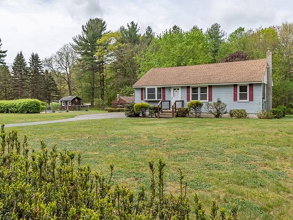 What a PRIME Pelham corner lot! This home is located across from Peabody Town Forest Trails, and minutes from convenience stores! Come build some sweat equity on this 3 bedroom, 1 bath ranch located on a beautiful corner acre lot! Hardwood floors in living room, bay window, mudroom looking out onto the pool area. Each bedroom has hardwood floors. Linen and pantry closet in the hallway. New heating system, and electric panel! Open concept kitchen/living room. Partially finished basement, and attic pull down for additional storage. Multiple outbuildings for storage and entertainment! Property sold as-is! Open house Friday 5/17 from 4-6pm and Saturday 5/18 from 1-3pm.