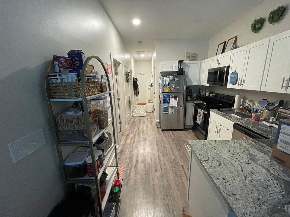Brand new renovated two bedroom one bathroom apartment in the heart of downtown Manchester. This spacious apartment features an open floor plan concept in the kitchen and living room, with large windows that provide an abundance of natural light. The two bedrooms are located off the main hallway, providing both privacy and tranquility for residents. This apartment boasts all brand new luxury finishings, including quartz countertops, stainless steel appliances, and new shaker cabinets. Washer/Dryer is in unit and a remote controlled split system allows residents to control the heat and cooling. The property is centrally located, and a 45 second walk from Bridge and Elm Street (US Route 3), which are two of Manchester's primary commercial corridors (US Route 3). The Pearl Street parking lot is conveniently located directly behind the the building, and residents can purchase a monthly pass for $60 through the city. Convenient access to US Route 3, and I-293 for all commuters. The building is less than a mile from SNHU, and is within close proximity to Pulaski Park, SNHU Arena, Gill Stadium, and Sheehan-Basquil Park. Enjoy all that downtown Manchester has to offer, as this property is steps away from countless dining options, retail outlets, and nightlife. Secured building with elevator. Owner pays water & sewer. Tenant pays electric, which runs the heat and hot water. Cats allowed and dogs with breed restrictions