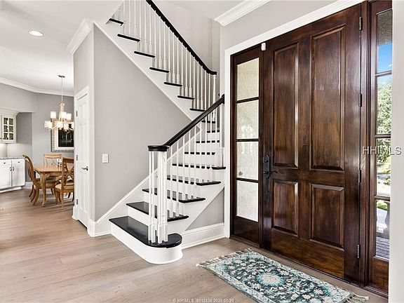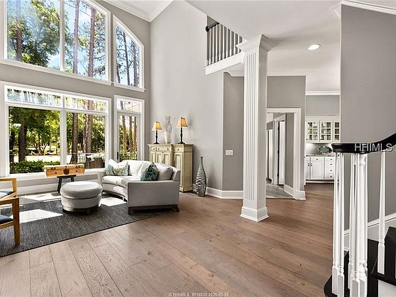 Welcome home! Beautifully updated and appointed with tasteful finishes throughout. Elegant curb appeal and inviting from the moment you open the front door. Grand 2 story entry opens to the living room with a wall of windows. The kitchen family room is a great entertaining space. 1st floor master suite with spa bath, double walk-in closets. Easy access from the kitchen, living room, and master suite to the back porch. Media room over the garage, and 4 guest suites on the 2nd floor. Many windows to enjoy the natural light and the views of the 11th fairway. Wexford is a private community with golf, marina, tennis, social, no weekly rentals.
