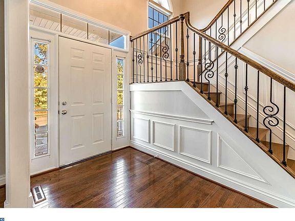 Custom colonial with spacious rooms and plenty of windows that allow for natural light throughout the home. Gleaming Hard Wood Floors encompass 1st & 2nd floors. Dramatic foyer featuring turned stair case with wrought iron accents. Vaulted ceiling family room with 2 skylights, wood fireplace flanked by windows and amazing. The inviting kitchen features granite counters, tile backsplash, stainless steel appliances, built-in desk area, pantry, spacious breakfast area and sliders leading to the huge rear paver patio with Hot Tub. Living room open to the dining room for ease of entertaining. Home has been updated with custom moldings, woodwork and built-in throughout. Master suite has cathedral ceiling, skylight, extra large walk in closet, master bath with Jacuzzi garden tub, skylight, separate shower, private toilet area, granite counter tops, tile floor and double sinks. Three other good sized bedrooms all with ample closet space, a spacious updated hall bath and conveniently located laundry area. Basement with extra-large wide open finished area with newer carpeting, Sauna and tons of storage. Lush landscaped grounds and strategically placed in ground pool with aluminum safety fence to separate it from the rest of the open yard, sports court and shed. Additional amenities include ceiling fans, recessed lighting, central vac system, alarm system, lawn sprinkler system, newer garage doors, pavers, stone accents and more! One year home warranty offered for a worry free purchase.